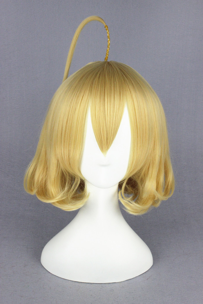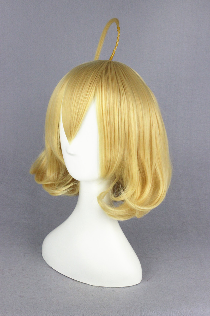 35cm Short Curly Blonde Akuma no Riddle Ahoge Wig Synthetic Anime Cosplay Hair Wigs CS-170D
