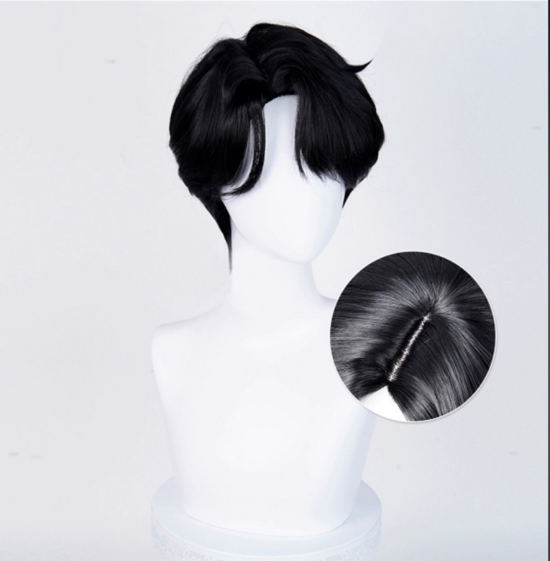 30cm Short Black Straight KPOP Demon Hunters Jinu Wig Synthetic Anime Halloween Party Cosplay Hair Wigs CS-639H
